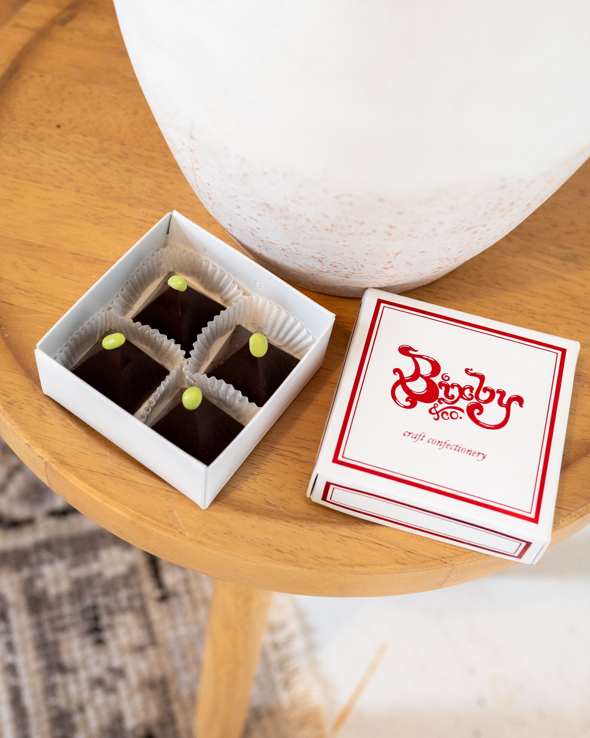 A decadent treat to savor with rich flavors of bourbon Irish Coffee caramel in a dark chocolate peak.