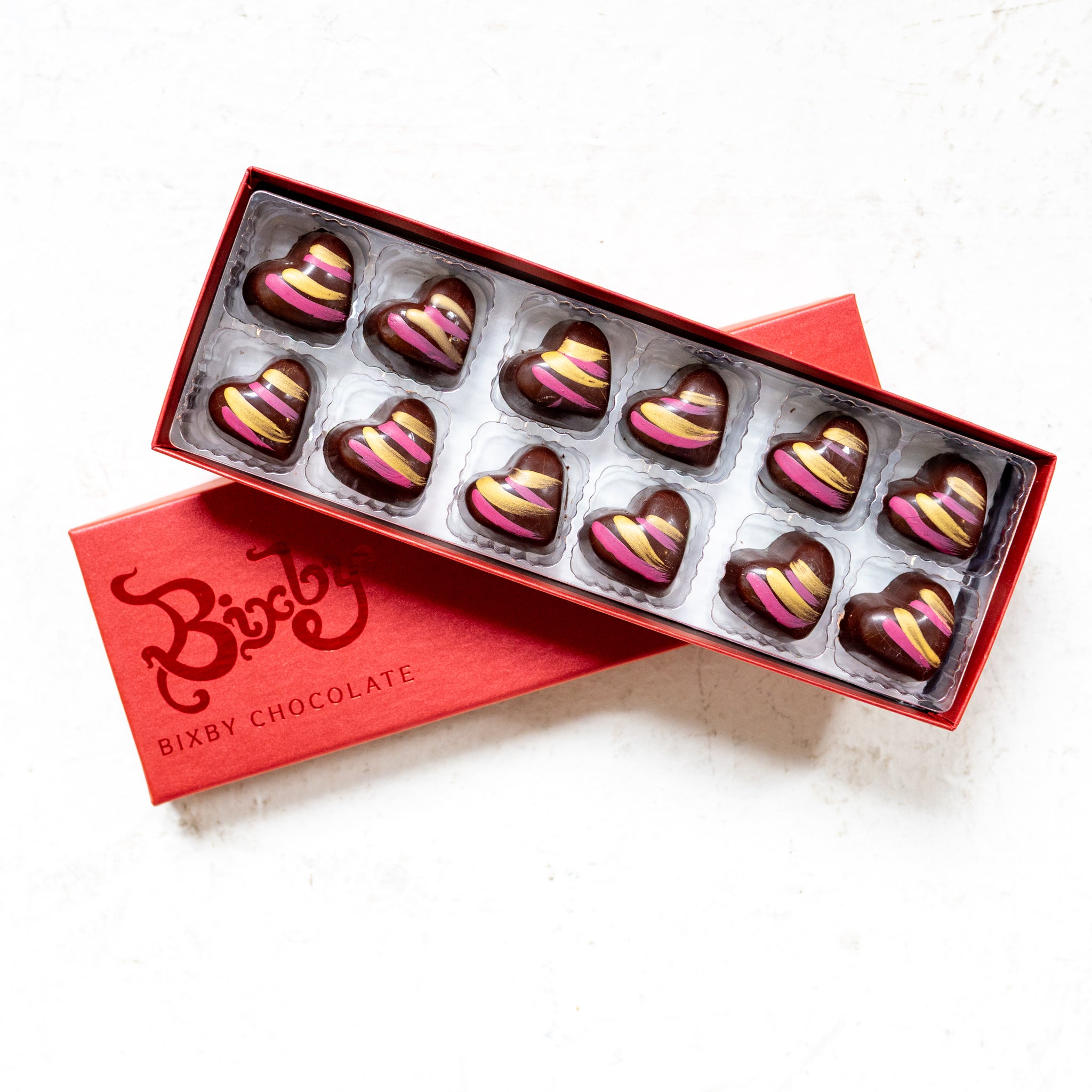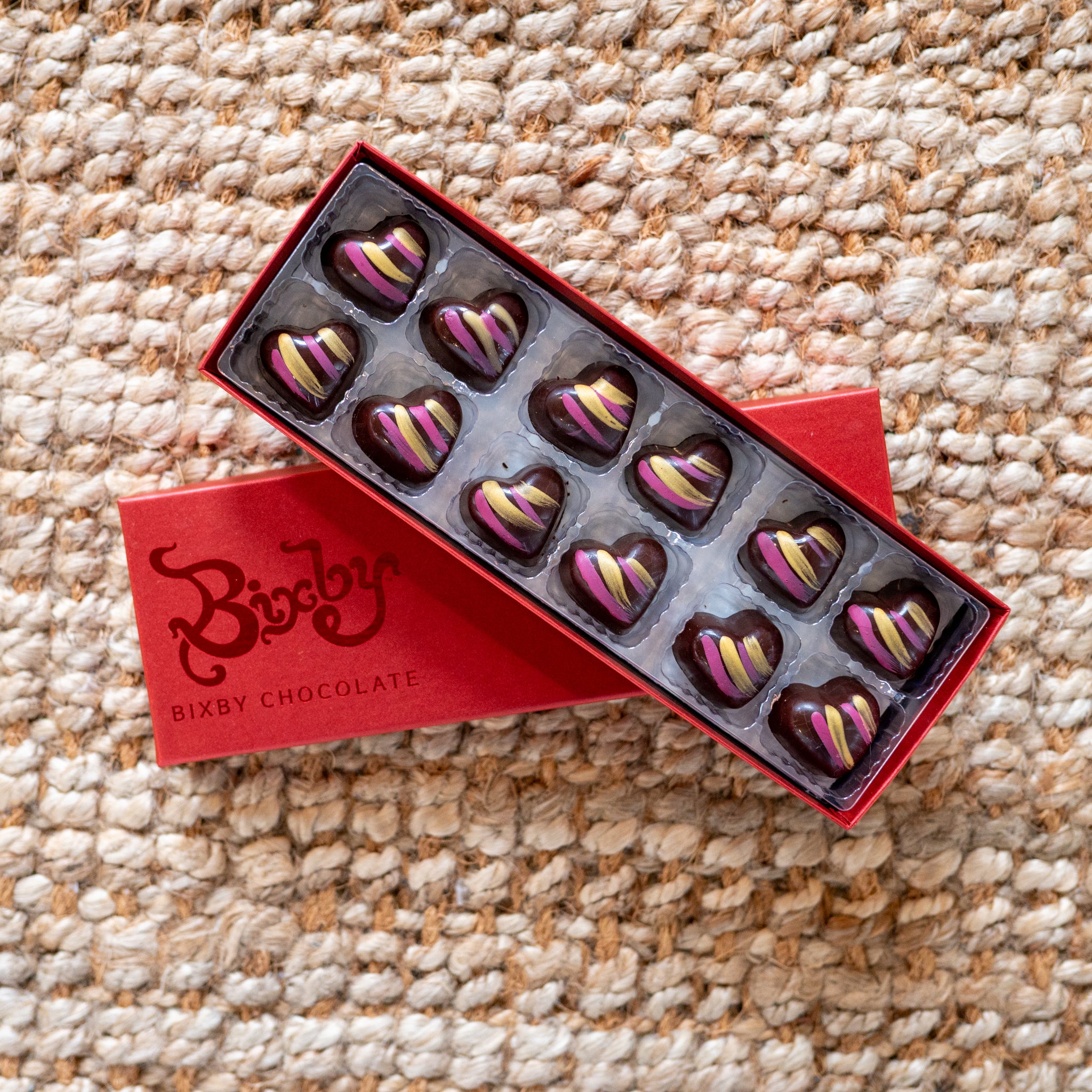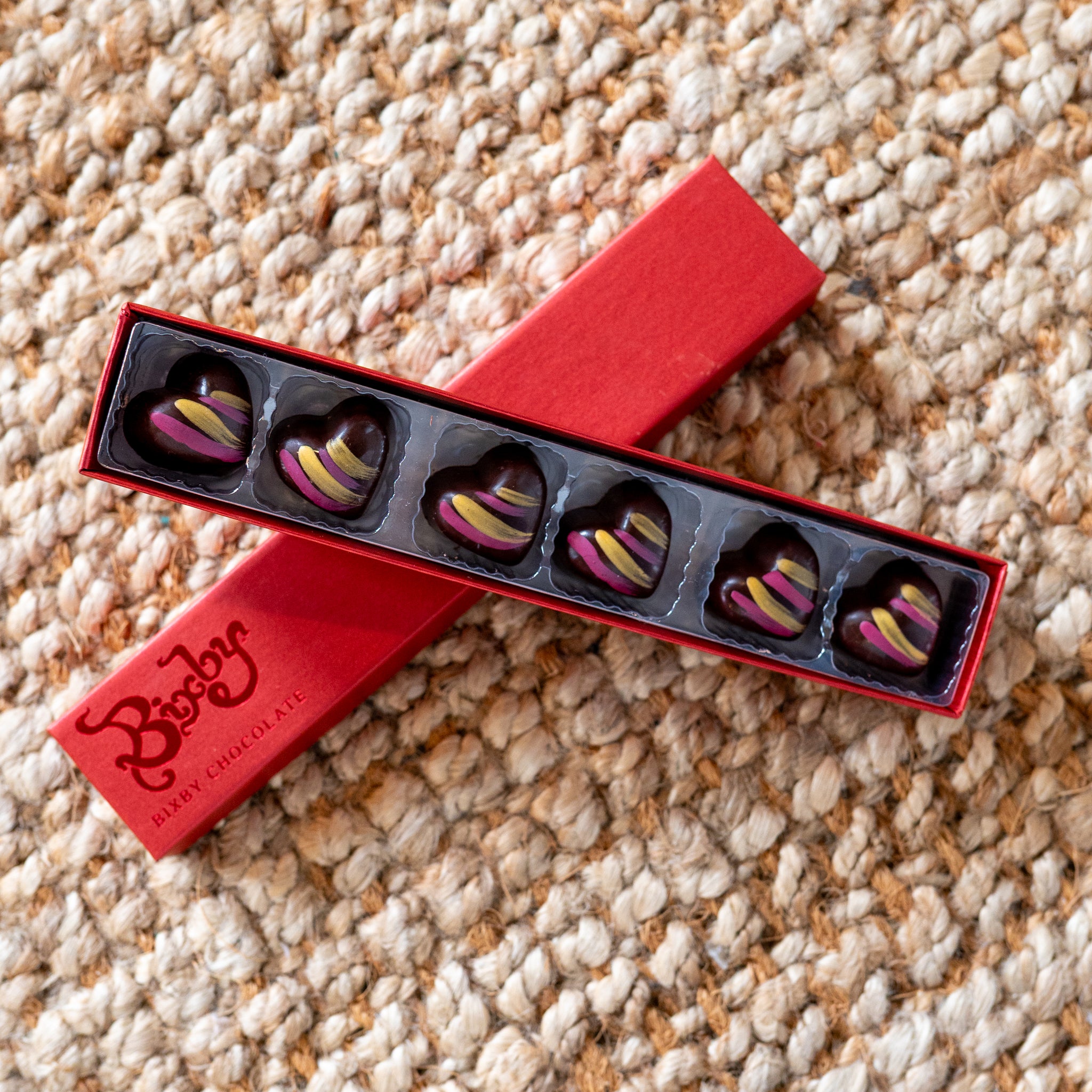 Experience a vibrant dance of flavors tucked inside an elegant, dark chocolate heart shell. Our Yuzu Heart bon bons are meticulously crafted for those who crave a sophisticated balance of tart, sweet and floral notes.
