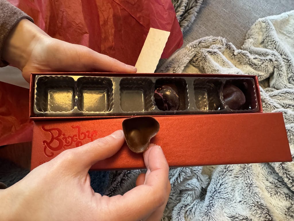 An assorted of all three of our special heart shaped bon bons: Blood Orange Caramel, Raspberry Caramel, Honey Passion Fruit Ganache.