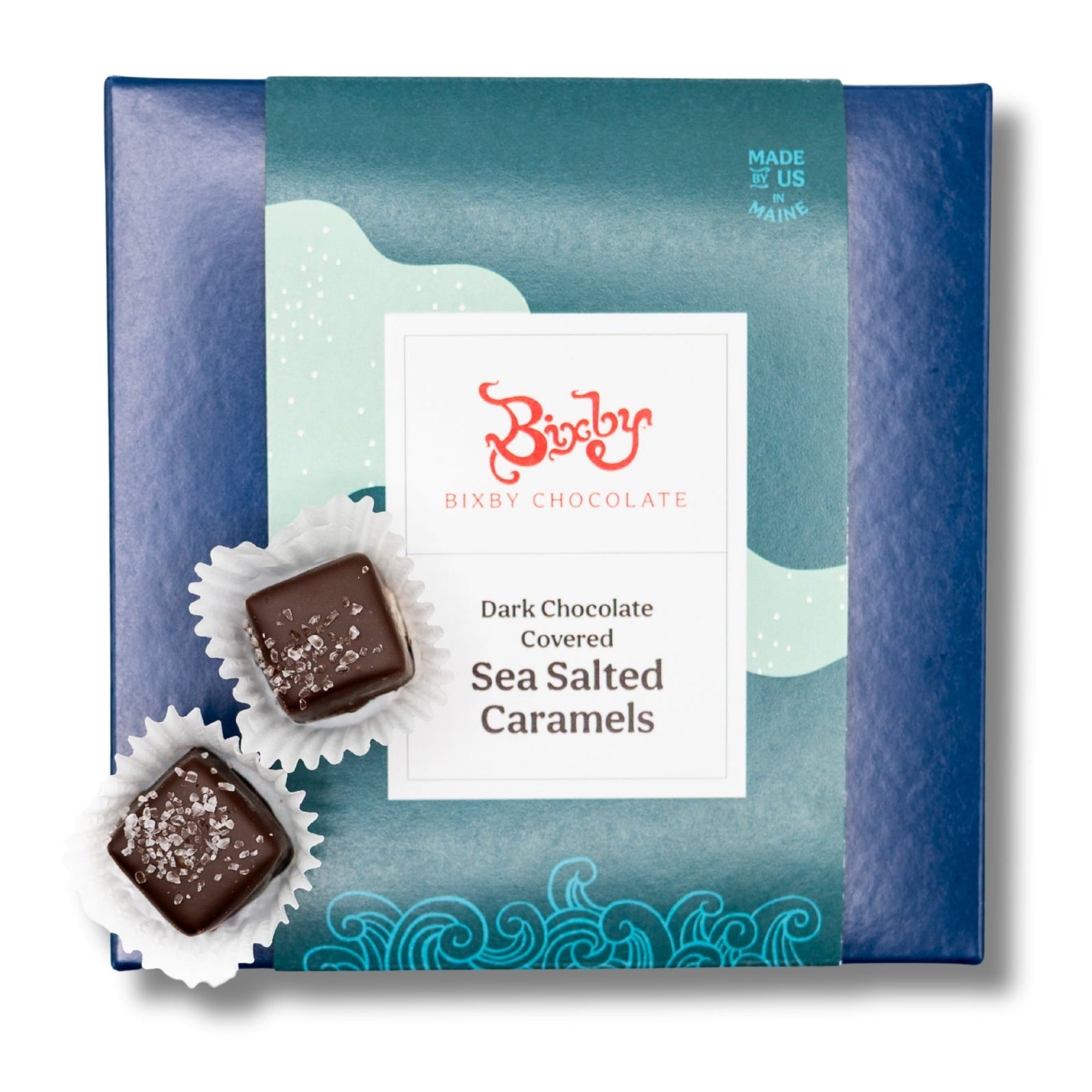 Salty, sweet, and so satisfying. Bixby Chocolate's soft, non-GMO, caramels are covered in deluxe dark or milk chocolate. Each piece is sprinkled with sea salt crystals, harvested from the pristine shores of Maine, that enhance the buttery flavor of the caramel. Available in milk or dark chocolate.