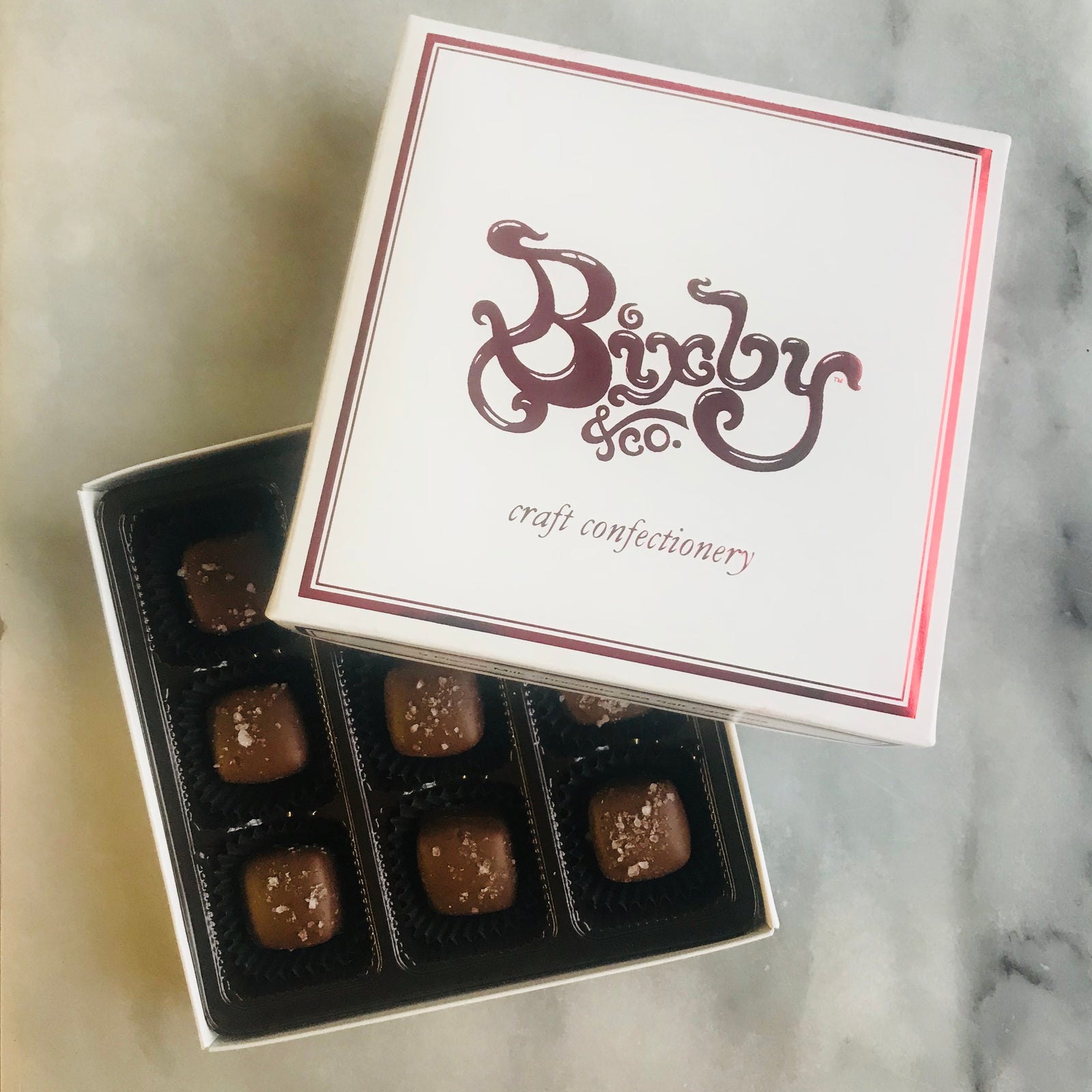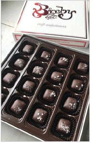 Salty, sweet, and so satisfying. Bixby Chocolate's soft, non-GMO, caramels are covered in deluxe dark or milk chocolate. Each piece is sprinkled with sea salt crystals, harvested from the pristine shores of Maine, that enhance the buttery flavor of the caramel.
