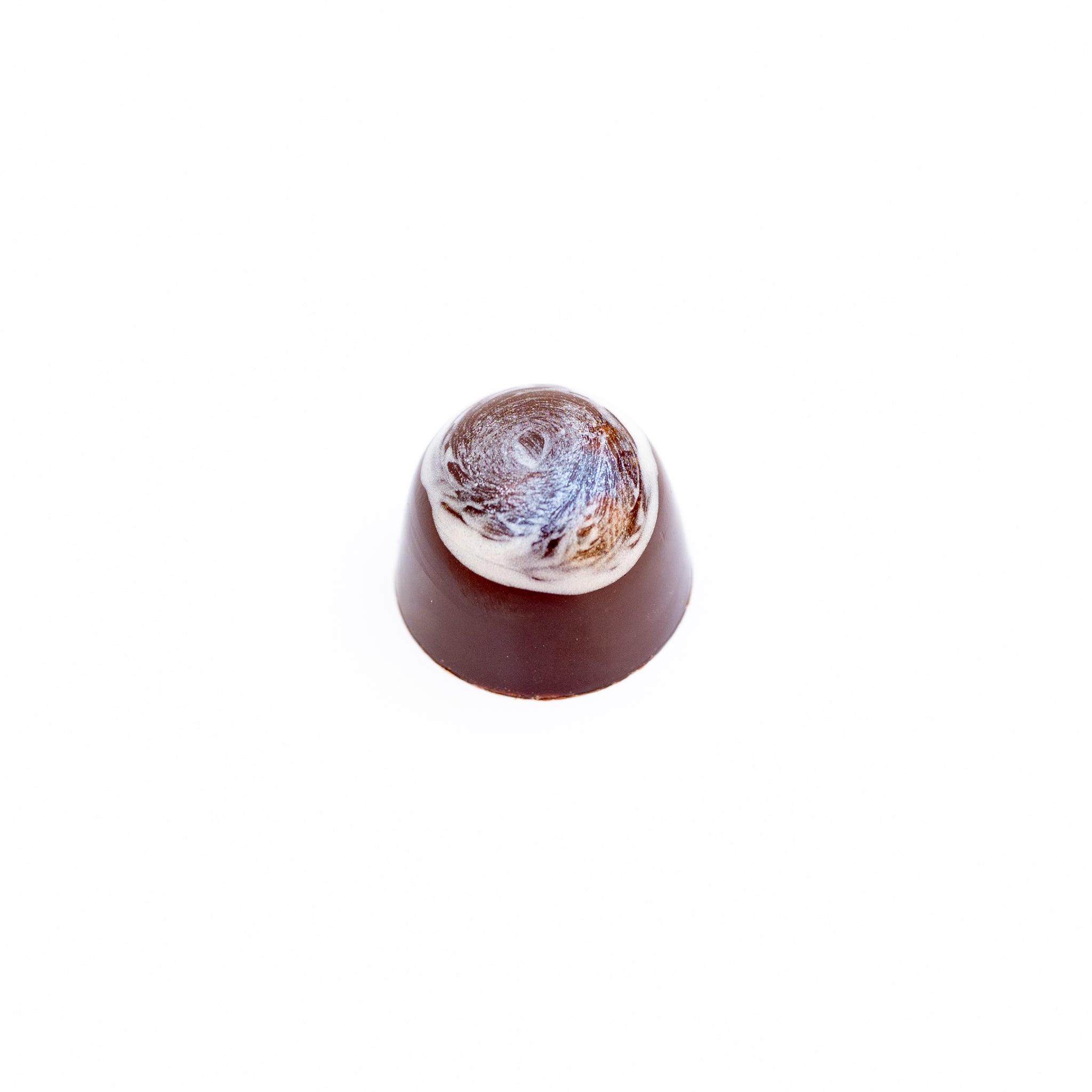 Celebrate the cozy elegance of the season with our Eggnog Bon Bon. This treat is a spirited nod to the holiday classic. Smooth ganache made from white chocolate, heavy cream, and a touch of rum is infused with vanilla bean, orange zest, and traditional winter spices like cinnamon, nutmeg, clove, and allspice. Wrapped in a shell of rich dark chocolate, each bite is velvety and beautifully aromatic that will warm you from the inside out.